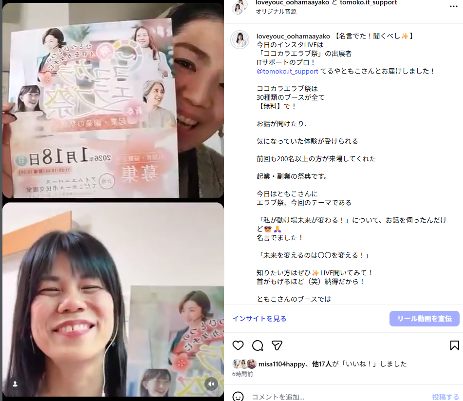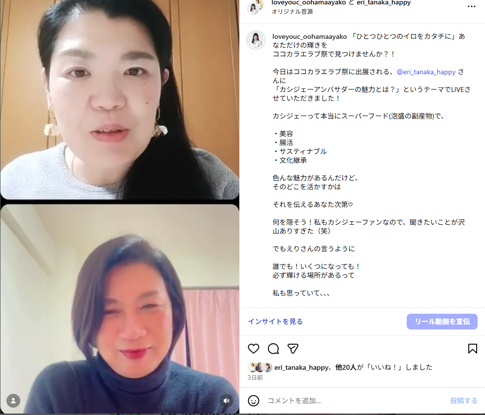 インスタライブで「ココカラエラブ祭」の出展者の皆さんと